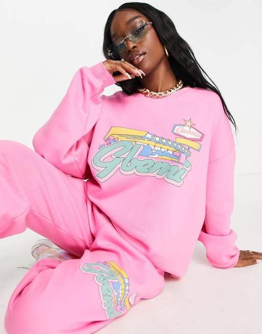 Gbemi – Oversize-Sweatshirt in Rosa mit Motiv-Print, Kombiteil
