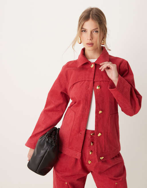 Ghospell – Drill – Jeansjacke in Rot, Kombiteil