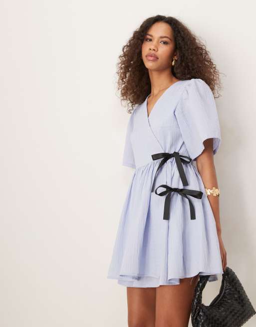 Ghospell – Mini-Wickelkleid in Kornblumenblau mit kontrastierenden Schleifen
