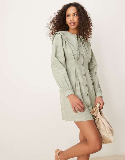 Ghospell – Minikleid in blassem Khakigrün mit übergroßem Kragen