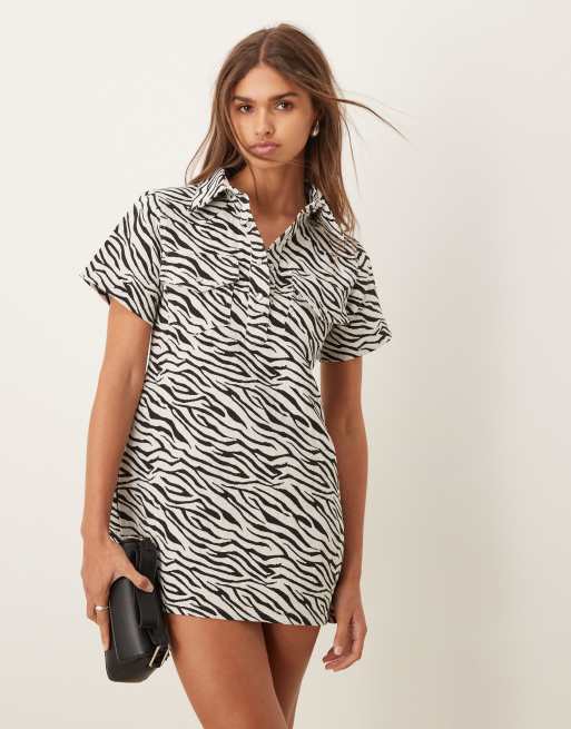 Ghospell – Zia – Minikleid mit Zebramuster in Schwarz-Weiß