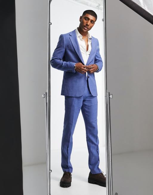 Gianni Feraud – Einreihige Anzugjacke in Blau mit Fischgrätmusterung