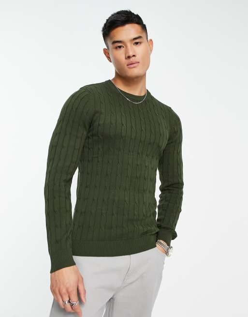 Gianni Feraud – Gerippter Pullover in dunklem Olivgrün mit Rundhalsausschnitt