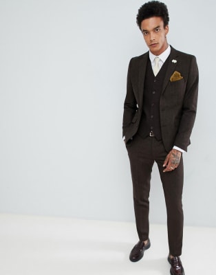 Gianni Feraud – Schmale Anzughose aus brauner Donegal-Wollmischung