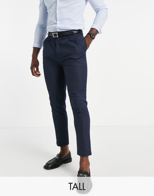 Gianni Feraud Tall – Leinenhose in Marineblau mit Bundfalten