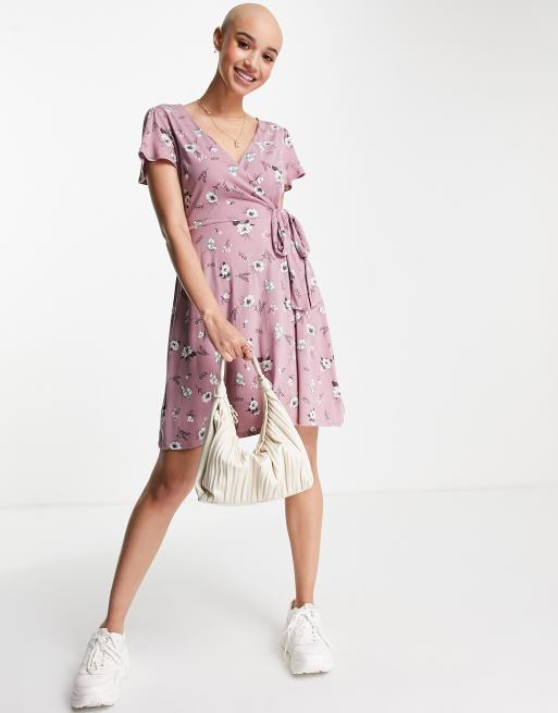 Gilli – Kleid in Malve mit Wickeldesign vorne und Blumenmuster