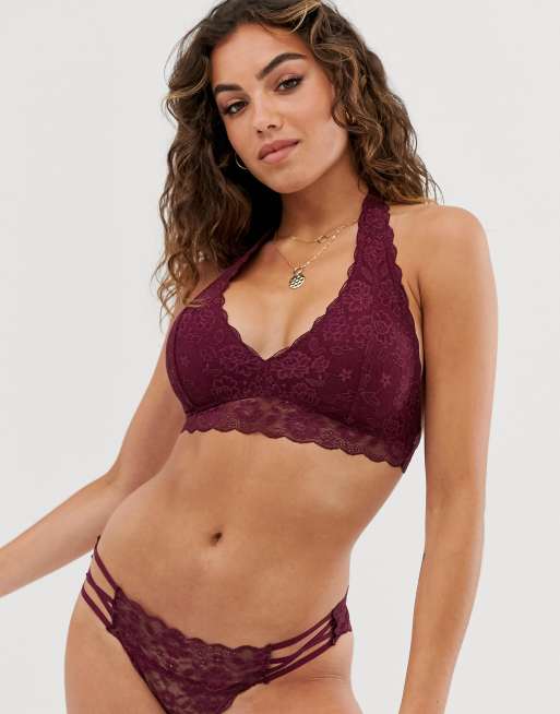 Gilly Hicks – Core – Burgunderrotes Spitzenbustier mit Neckholder
