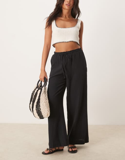 Gina Tricot – Elegante Hose in Schwarz mit weitem Bein und Bundfalten vorne