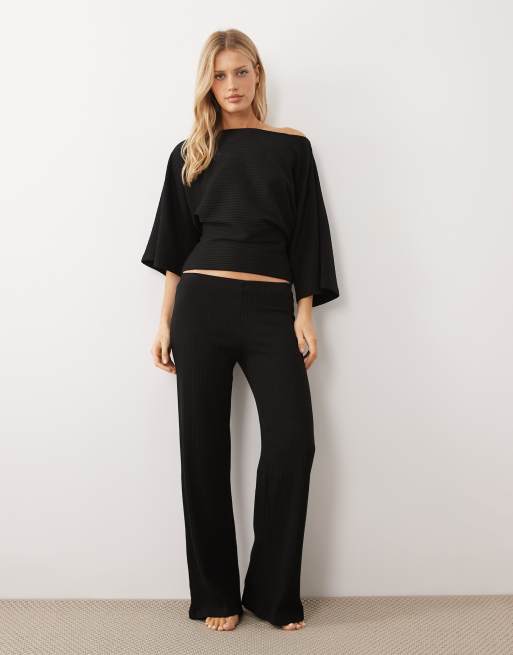 Gina Tricot – Gerippte Hose in Schwarz, Kombiteil