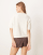 Gina Tricot – Kurzärmliges Oberteil aus mittelschwerem Strick in Wollweiß mit Rundhalsausschnitt