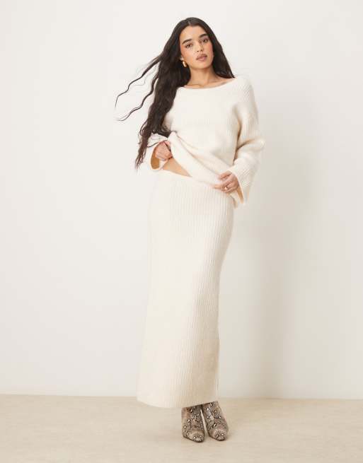 Gina Tricot – Maxirock aus geripptem Grobstrick in Creme mit Seitenschlitz, Kombiteil