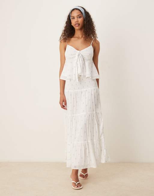 Gina Tricot – Maxirock in Weiß mit Paisley-Muster, Kombiteil