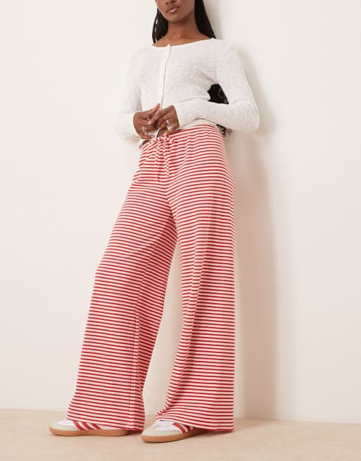 Gina Tricot – Superweiche Hose aus Jersey in Rot und Weiß gestreift mit weitem Bein und Kordelzug an der Taille
