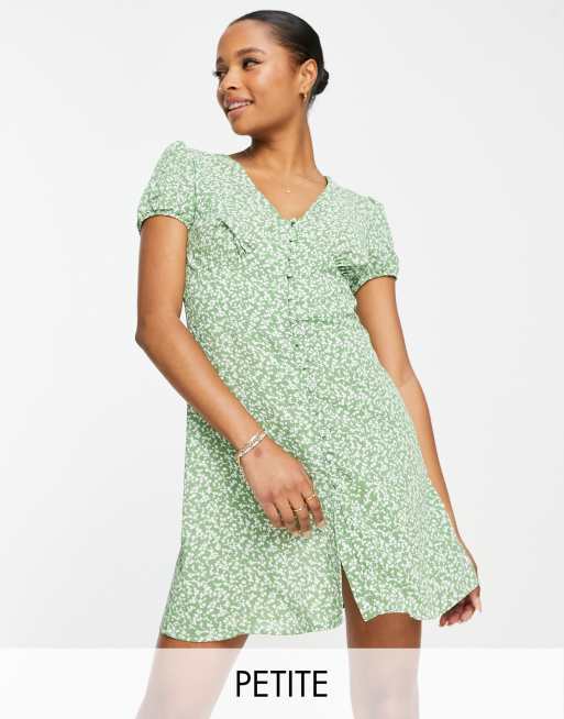 Glamorous Petite – Kurzes Freizeitkleid in Grün mit Knopfleiste vorn und Frühlingsblumen