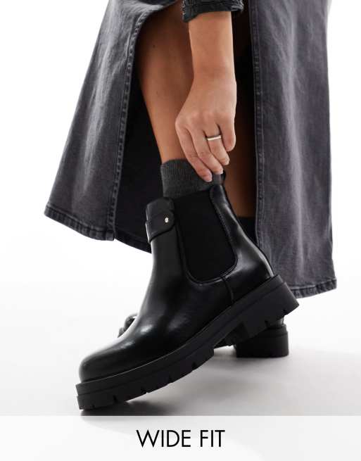 Glamorous Wide Fit – Chelsea-Stiefel mit dicker Sohle in Schwarz