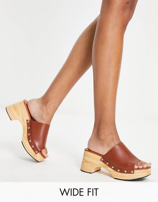 Glamorous Wide Fit – Mittelhohe Clog-Mules in Hellbraun, weite Passform