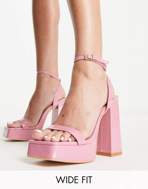 Glamorous Wide Fit – Sandaletten in Rosa-Lack mit Plateausohle, weite Passform