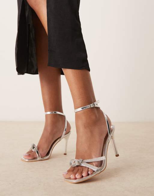 Glamorous Wide Fit – Sandaletten in Silberoptik mit Stilettoabsatz und verzierter Schleife, weite Passform