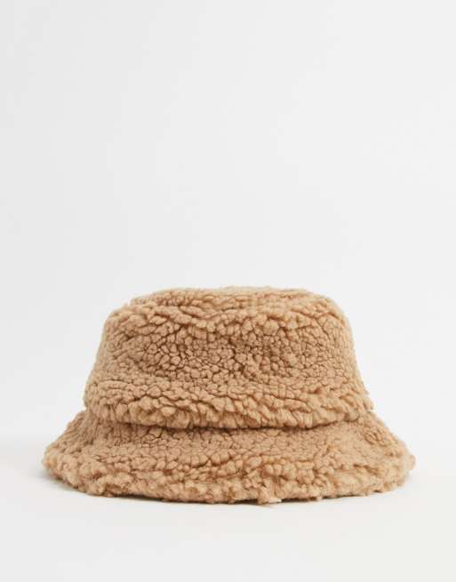 Glamorous – Anglerhut mit Teddyfell in Camel