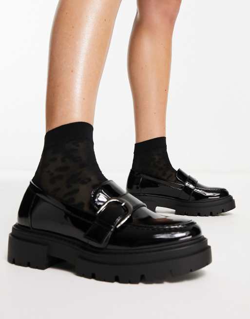 Glamorous – Exklusiv – Loafer in schwarzer Lackoptik mit Schnalle und dicker Sohle