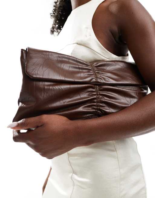 Glamorous – Geraffte Clutch-Tasche in brauner Lackoptik