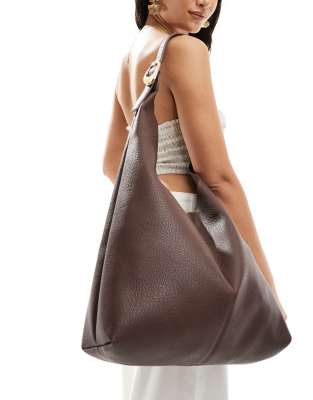 Glamorous – Lässige Schultertasche in Braun mit Schnallendetail in geschmolzener Optik