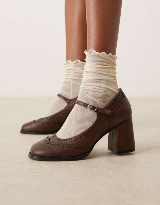 Glamorous – Mary-Jane-Schuhe in gewaschenem Braun mit Blockabsatz