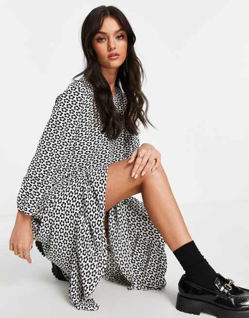 Glamorous – Midaxi-Hängerkleid mit plissiertem Saum und Bubble-Gänseblümchenmuster