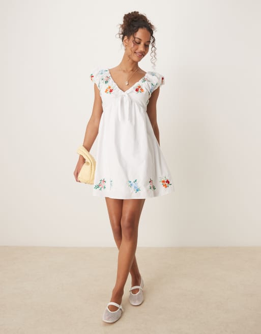 Glamorous – Mini-Hängerkleid in Weiß mit Blumenstickerei