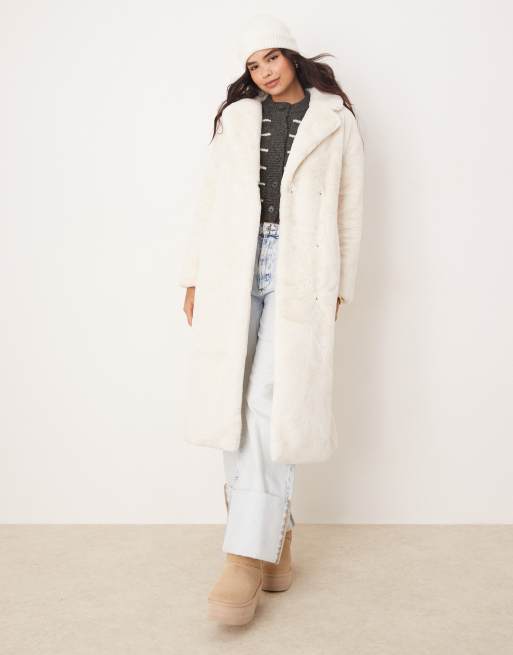 Glamorous – Morgenmantel aus kuscheligem Kunstpelz in Creme