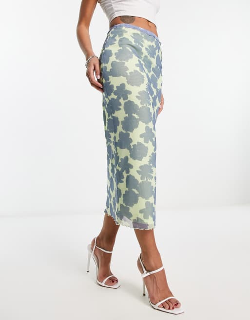 Glamorous – Netzstoff-Schlupfrock mit Spitzenbesatz am Bund und blau-grünem Blumenmuster
