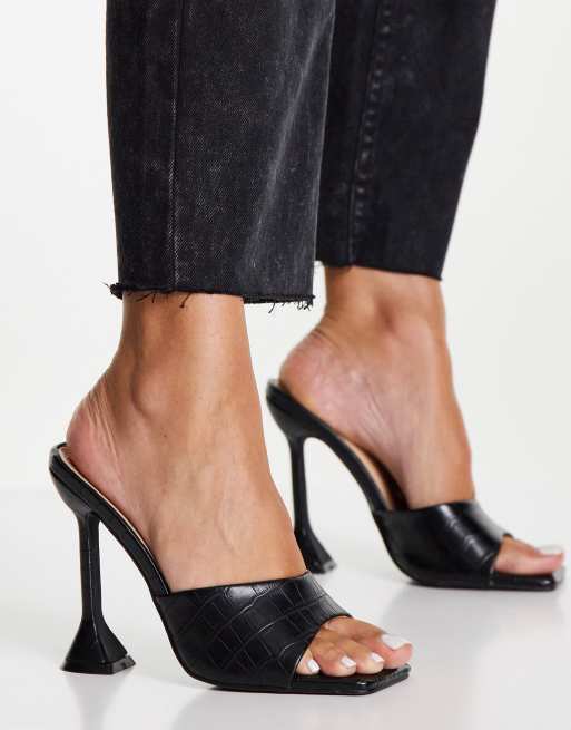 Glamorous – Sandalen mit Statement-Absatz in Kroko-Schwarz