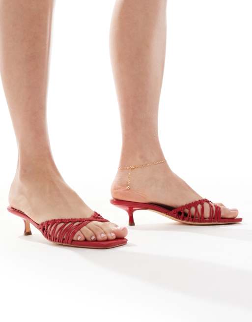 Glamorous – Sandaletten in Rot mit Webmuster und Kitten-Absatz