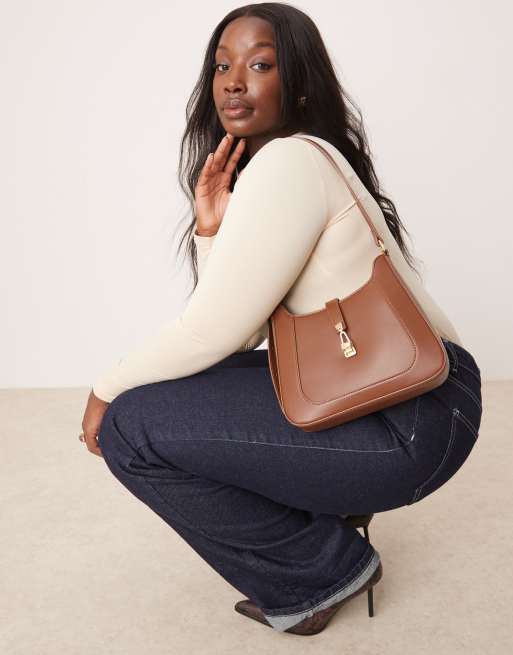Glamorous – Schultertasche in Dunkelbraun mit goldfarbenem Verschlussdetail