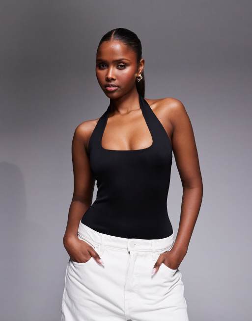 Good American – Formender Neckholder-Body in Schwarz mit eckigem Ausschnitt