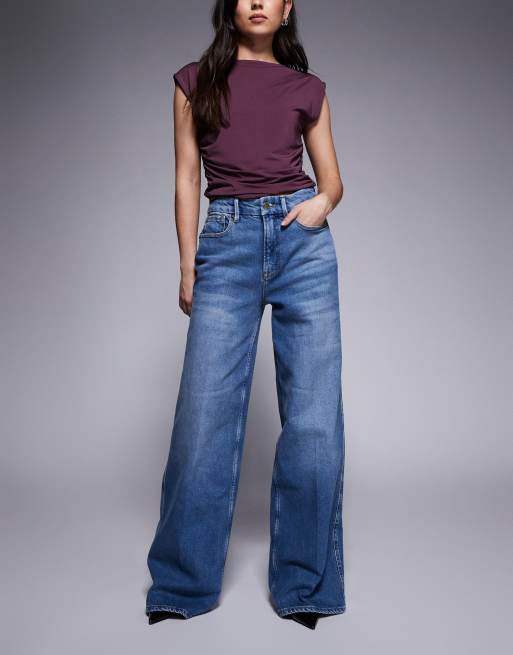Good American – Good Skate – Bequeme Jeans aus Denim in mittelblauer Waschung mit hohem Bund und weitem Bein