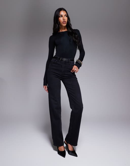 Good American – Soft Tech Good True – Gerade Jeans in Schwarz