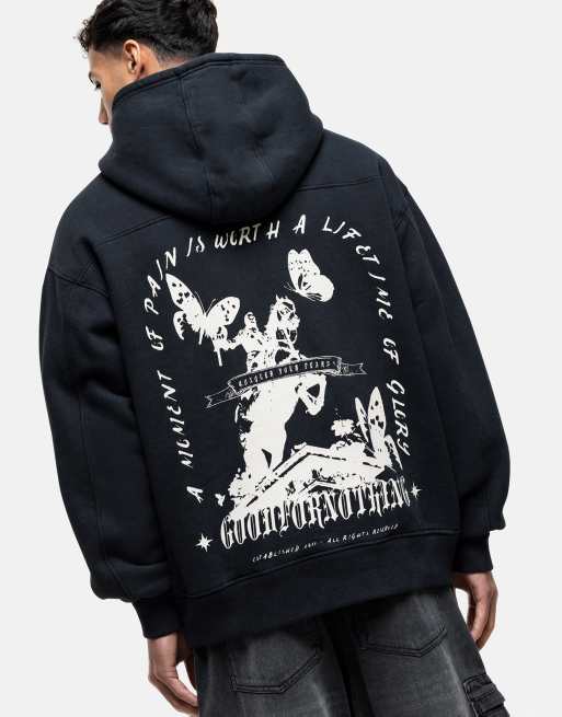 Good For Nothing – Kapuzenpullover in Schwarz mit Reiter-Print am Rücken