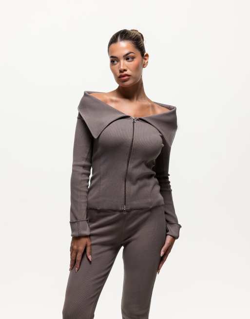 Good For Nothing – Langärmliges geripptes Oberteil in Braun