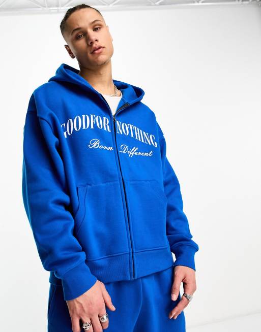 Good For Nothing – Oversize-Kapuzenjacke in Kobaltblau mit durchgehendem Reißverschluss und Logoprint vorne