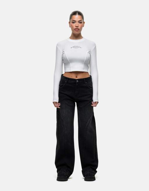 Good for Nothing – Weit geschnittene Jeans in schwarzer Waschung mit Nahtdetail