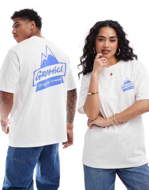 Gramicci – Unisex-T-Shirt aus Baumwolle in Weiß mit Berg-Grafik