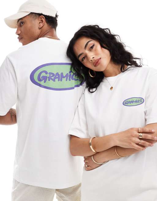 Gramicci – Unisex-T-Shirt aus Baumwolle in Weiß mit Grafik vorne