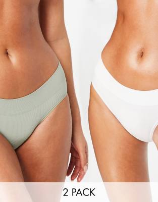 Green Treat – Nahtlose Slips in Salbeigrün und Weiß im 2er-Pack