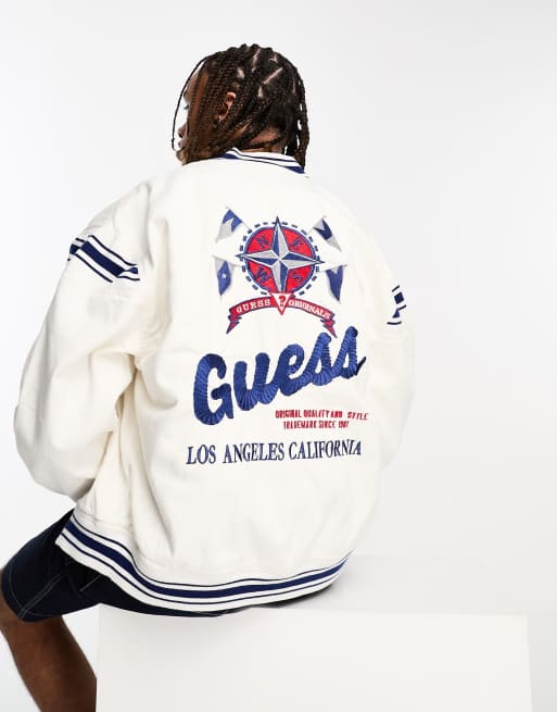 Guess Originals – Bomberjacke in Weiß mit Kompassprint