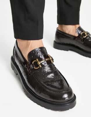 H by Hudson Exclusive – Alevero – Loafer aus Leder in Braun mit Straußenprägung