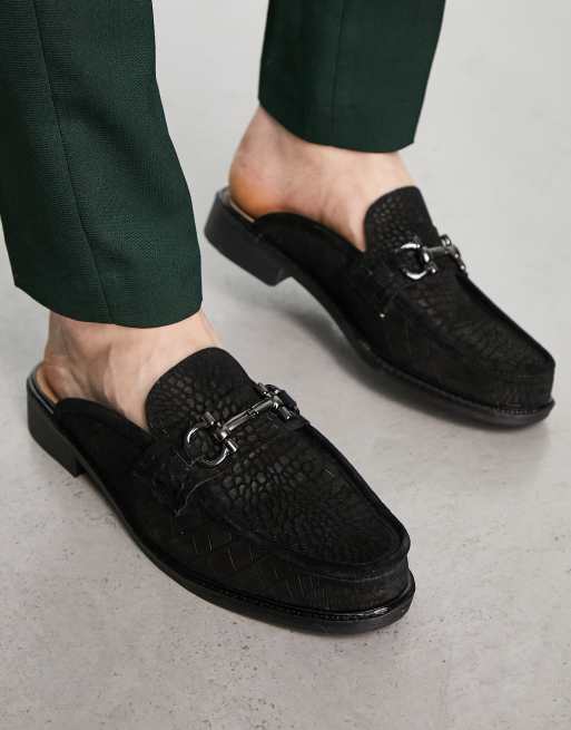 H by Hudson – Exklusiv – Bevan – Wildleder-Loafer in Kroko-Schwarz mit offener Fersenpartie