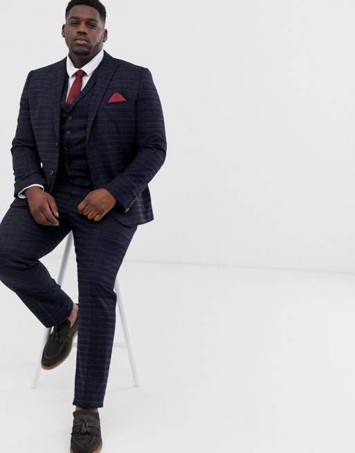 Harry Brown Plus – Schmal geschnittener Anzug in Marineblau und Gold kariert