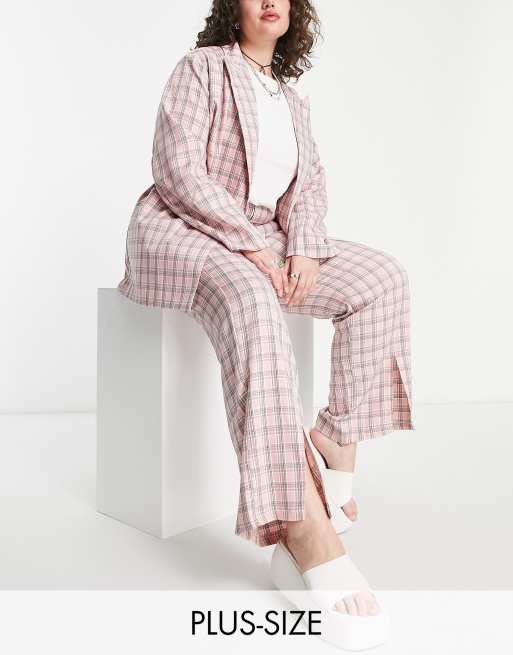 Heartbreak Plus – Hose in Rosa kariert mit Saumschlitzen, Kombiteil