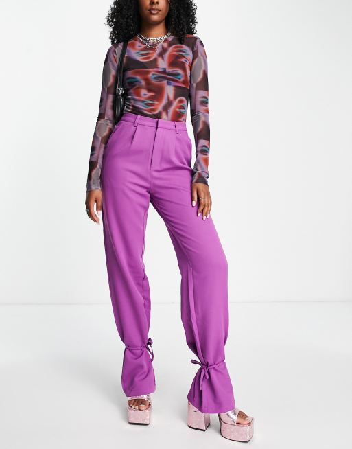 Heartbreak – Elegante Hose in Lila mit geschnürten Bündchen, Kombiteil